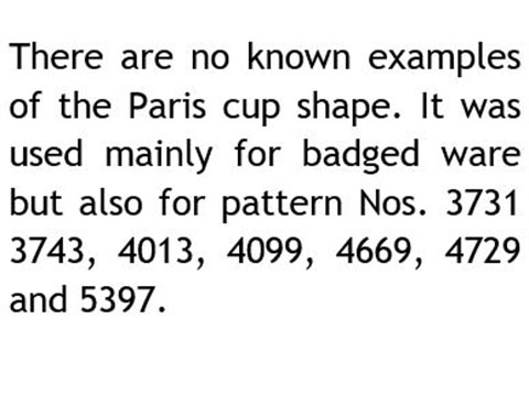 the cups are shown approximately to scale relative to each other. New shapes continue to be discovered so if you have a shape that is not shown here, or have one that is listed but without a photograph, please email information@shelley.co.uk